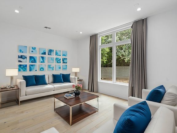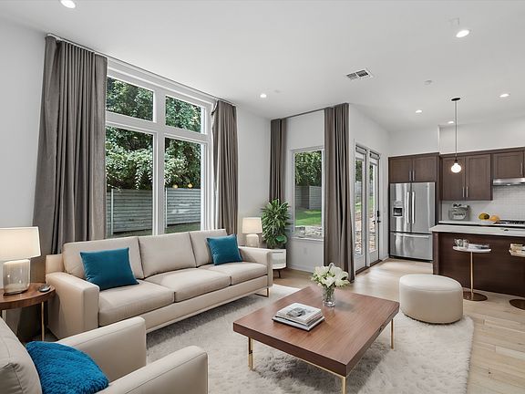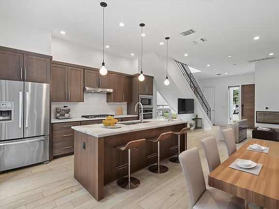 Lock n Leave which backs to green space for city living with hill country green scenery views. Just a few short blocks from award-winning Eanes ISD schools, this Scandinavian style home features high ceilings, new hardwood floors, designer finishes, gas appliances, and a premium location within the community. Open floorplan, bright rooms from great windows, and a casual elegance at a competitive price. Walkable to retail, shopping, restaurants and schools.