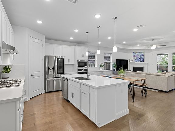 With three bedrooms, a private study, and thoughtful updates throughout, this 2020-built home is designed for both comfort and flexibility. Located in the gated community of Willow Creek at Auburn Hills and zoned to Prosper ISD with Reeves Elementary nearby, it combines a neighborhood feel with everyday convenience. Engineered wood flooring flows through the living areas and study, creating warm, inviting spaces for gathering, working, or relaxing. The kitchen is a natural hub of the home, finished with quartz countertops, upgraded hardware, a walk-in pantry, GE Profile stainless steel appliances, and a 5-burner gas cooktop with vent hood. Whether it’s a quick breakfast before school or hosting friends on the weekend, this space adapts easily to the moment. The primary suite offers a retreat of its own, with a spacious walk-in closet that connects directly to the laundry room for everyday ease. Bathrooms feature modern 12x24 tile, while two additional bedrooms provide room for family or guests. The dedicated study is perfectly suited for a home office, playroom, or hobby space - offering flexibility as needs change. The garage adds both function and style with epoxy flooring, an EV charger, and bonus storage space. Outside, the oversized covered patio is plumbed for gas and ready for grilling, dining, or relaxing while overlooking updated landscaping. Life in Auburn Hills offers more than a beautiful home: it’s a lifestyle. The community features multiple pools, parks, playgrounds, and a recreation center, along with trails that wind through greenbelts and natural spaces. It’s easy to stay active, gather with neighbors, or simply enjoy the outdoors without leaving the neighborhood. With shopping, dining, and medical facilities close by, Auburn Hills delivers the perfect balance of convenience, connection, and everyday retreat.