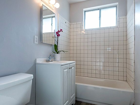 Great 3 bedroom, 1 bathroom, stand-alone unit in a 4 plex. Many new upgrades including new refrigerator, oven, kitchen cabinets and quartz counter tops in the kitchen. New wood floors and paint throughout, plus recently remodeled bathroom (new tub, vanity). Wall heater inside and washer/dryer hookups in the 1 car, attached garage. Large, private, cement patio off the kitchen for sunshine and entertainment.