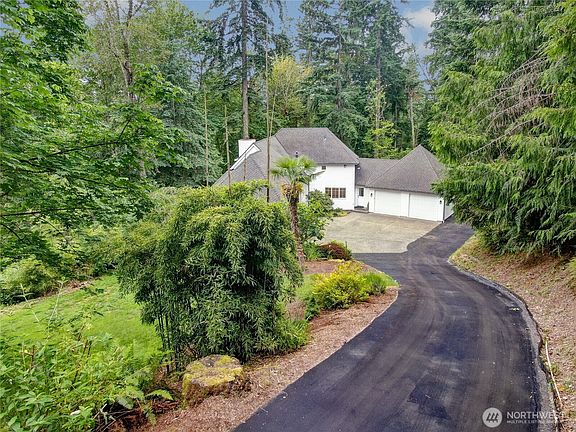 GREAT NEW PRICE! Secluded 4-bedroom home in desirable Mirrormont. Expansive Living Room with vaulted ceilings and huge windows with forest view. Formal Dining Room and huge family room off the kitchen. Great floor plan for entertaining! Recent updates - full exterior paint, wraparound deck and railing, septic system, LG refrigerator, Bosch dishwasher, FP oven, range hood, baths, LG W/D, bedroom paint. Solid hardwood floors on main level. Main floor ensuite primary bedroom with elegant shower, walk-in closet with custom storage. Kitchen has granite, SS, gas cooking. Upper level has two bedrooms, full bath, and a bonus room. Lower level with bedroom, office, and full bath. Situated on a private 1-acre lot. Large two car garage. RV parking.