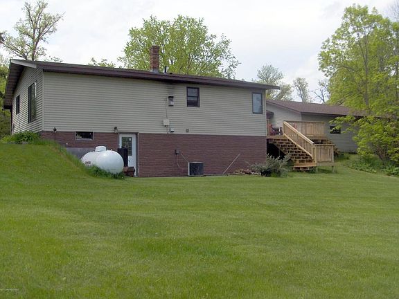 Enjoy days on the deck and evenings in the sunroom's hot tub of this 3+ bedroom, 3 bath rambler on nearly 3 acres in the outskirts of Detroit Lakes. This home features an eat-in kitchen with beautiful oak cabinets, main floor master bedroom and bath with jetted tub, dual sinks and ceramic tile, media room with gas fireplace, family room with wood fireplace, fully finished basement with large family room, 4 stall attached garage, a lush green yard and a pole shed for extra storage.