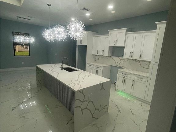 Beautiful Property!! This house comes with many surprises, come and check it out for yourself, you will be delighted. New Construction with porcelain tiles throughout, lovely granite countertops, tray ceilings in the living room and master bedroom. Stainless steel appliances. Storm impact windows and doors. Also, Glass doors in both showers. Outside kitchen, half bathroom and screened lanai. As a great bonus is a smart home. Everything you're looking for.