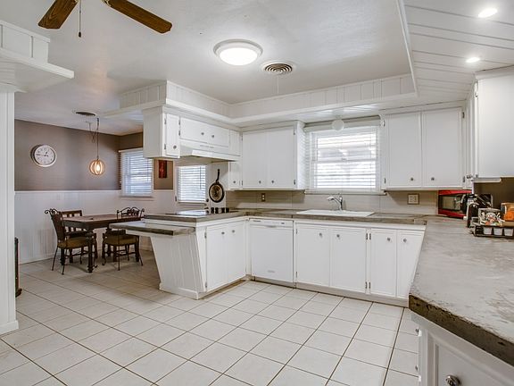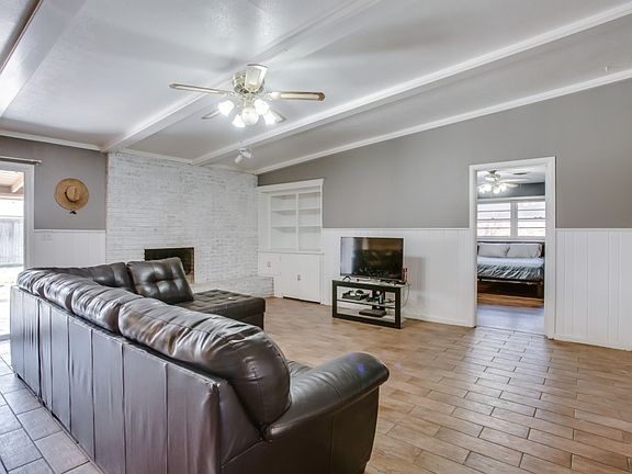 Beautifully updated four bedroom home that is perfect for first time home buyers or investors! Storage is not an issue in this updated kitchen that features concrete counters, painted cabinetry, pantry and more. The living room has a wood-burning fireplace and wood-like tile flooring. The primary bedroom has a separate shower and a walk-in closet. Additional features of this home include three remaining bedrooms, beautiful backyard with covered patio and a storm shelter. This home won't last long so call us TODAY!