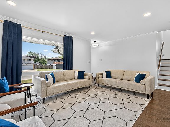 Welcome to Your Dream Home in Glenview! This spacious and unique tri-level home with finished basement sits on a beautifully landscaped 65'x120' corner lot surrounded by mature trees and lush greenery-true park-like living with huge gazebo, custom firepit and seating! Completely Rebuilt & Move-In Ready. Originally rebuilt down to the studs in 2009 ($250,000 investment), with updates including: All-new plumbing & 200-amp electric, New windows, roof, siding & floors & HVAC. More Recent Stunning 2023-2025 Renovations Include: 2023 Kitchen refresh: Refinished white oak floors, quartz countertops, stainless steel appliances, and white oak cabinets, Two fully updated baths, All new flooring on lower levels, All new lighting throughout, 2024-2025 Smart Upgrades Include: Smart switches (Google Home & Alexa compatible), Keyless entry locks on front & back doors, Modern light fixtures, Custom wood blinds & motorized smart shades, Exterior paint & new modern outdoor lighting, Horizontal wood privacy fence (2025). The open-concept layout offers flexible living across four levels: Main Level: Entry great room with bay window, tons of natural light, and fully updated kitchen, Upper Level: 2 spacious bedrooms and full bath, Lower Level: Family room, 3rd bedroom/home office, and a full addition with vaulted ceilings-perfect for an office, studio, or family room.