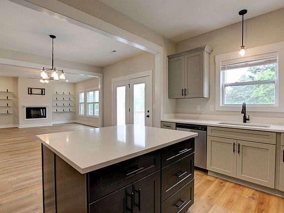 Electric fireplaceCovered front porchLarge laundry roomBack deckLarge dining area