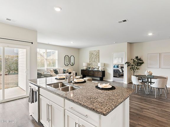 2505 Centerway Lane in Leland, NC, is a stunning single-family home in the sought-after Brunswick Forest community. Built in 2023, this residence features 3 bedrooms, 2 bathrooms, and a well-designed living space on a 0.20-acre corner lot. The home showcases a tiled-in shower in the master suite, updated cabinet hardware, and cabinets and vanities with soft-close hinges for added convenience. A brand-new stainless steel refrigerator is also included, enhancing the modern kitchen with its spacious granite island and ample storage.