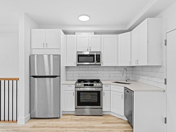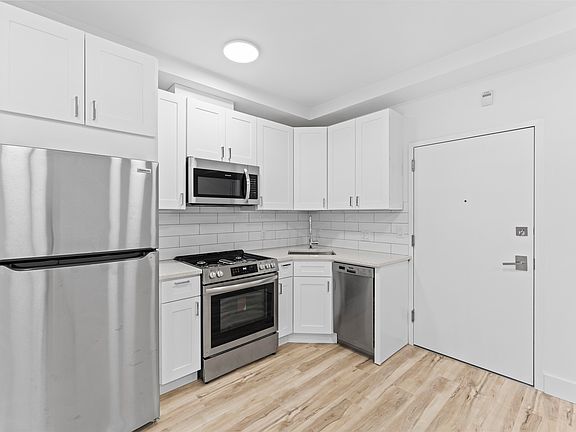 This newly renovated two-bedroom, two-bathroom apartment offers a modern layout with updated finishes throughout. The kitchen includes stainless steel appliances, contemporary cabinetry, and ample counter space. Large windows provide natural light in every room, and an in-unit washer and dryer adds to the convenience. Located in Union City, the building is close to schools, shops, restaurants, and public transportation with direct access to New York City.