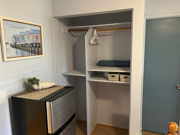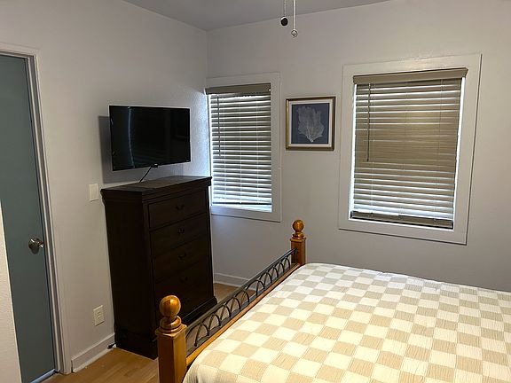 Private room with newly renovated private bathroom. Furnished. Clean shared kitchen , laundry and bbq. Refrigerator in room. Central heating and air. New wood flooring. Gated parking. Minutes to Lockheed, dining, golf and movies. View of evergreen trees in backyard. Available short or long term. No smoking or pets. Respectful professionals only. Shared utilities. Shared cleaning chores, once a week.