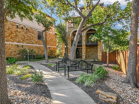 Beautiful townhome located in Tarrytown right in central Austin. The home is an end unit & has three bedrooms, three full bathrooms, a powder bathroom & an attached two car garage with epoxy floors. Conveniently positioned off Enfield & Mopac, you'll find yourself just minutes away from downtown, Lake Austin HEB, Deep Eddy Pool, Zilker Park & Whole Foods. Also nearby are some of Austin's favorites Maudie's, Hula Hut, Mozart's & Food Food. The 2nd floor has a spacious open floor plan tailor made for entertaining complete with the dining, kitchen & living rooms. The kitchen has a large center island, breakfast bar, granite countertops, wine fridge, walk-in pantry, under cabinet lighting & lots of counter space. The kitchen opens to the large living room that has a built-in corner fireplace. The primary suite situated on the 3rd floor has a dressing room, dry bar with a mini refrigerator & an oversized walk-in closet. The spa-like bathroom has gorgeous tile floors that go all to way up the wall to the ceiling, a soaking tub, a separate walk-in shower with two shower heads & a double vanity. Enjoy multiple outdoor living areas & balconies on the 2nd & 3rd floors. Located on the first floor is one of the secondary bedrooms that has a full bathroom & could easily be transitioned to an office or exercise room. Out the first-floor patio is the community outdoor area & park with walking paths & park benches for relaxing. Throughout the home you will find custom drapes & blinds, wood floors on the 2nd level, as well as glass French Doors, beautiful light fixtures, high ceilings, loads of storage & 3 outdoor living areas. This home has been well maintained & is radiant. HOA covers the water utility bill, outside maintenance, yard maintenance & outer home insurance. Front loading Whirlpool washer & dryer & refrigerator to convey. Offering move-in readiness, the low maintenance home is the ideal fit for those seeking a lock-and-leave lifestyle or year-round residence.