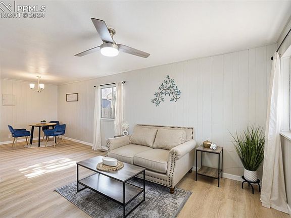Charming One-Level Ranch. Welcome to your dream home! This beautifully remodeled ranch offers the perfect blend of modern amenities and comfortable, single-level living. A wheel chair ramp is conveniently located off the driveway leading to the front door. With breathtaking mountain views, this property is a rare find. Three bedrooms each room is designed with comfort in mind, providing ample space for relaxation and privacy. A full modern bathroom with sleek fixtures and contemporary finishes, offering both functionality and style. Open floor plan ensures seamless flow between the living, dining, and kitchen areas, making it ideal for entertaining. The fully renovated kitchen showcases sleek new stainless steel appliances, new white cabinets with ample space and new solid surface countertops, marrying functionality with modern aesthetics. The one-Car garage is spacious and secure, the garage offers plenty of room for vehicles, with additional storage in the back yard storage sheds. There is ally access to the back yard if needed. Located in a serene neighborhood, this home is perfect for those seeking a tranquil retreat with all the conveniences of modern living. Close to shopping schools and Fort Carson. Don’t miss out on this gem – schedule a viewing today!