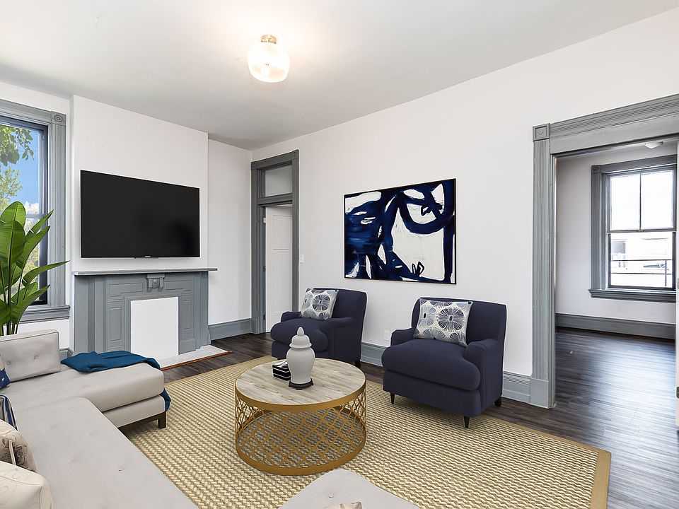 Spacious roomsLarge newer windowsStainless appliancesSolid wood cabinetryHigh end finishesOriginal fireplaces