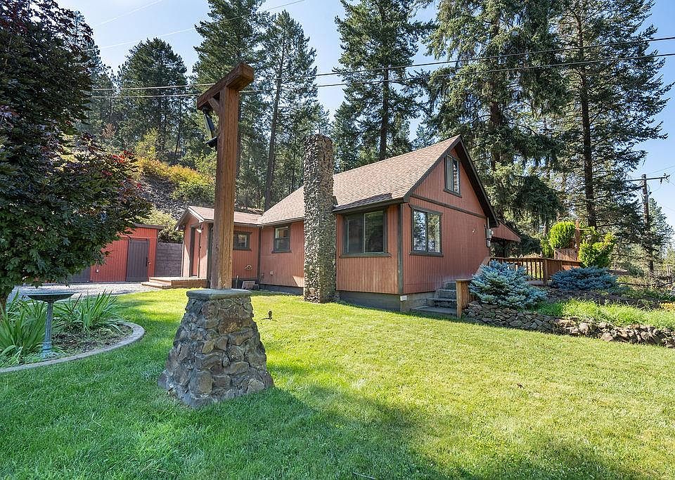 Experience charm and tranquility just moments away from Downtown Spokane! This delightful 2 bedroom, 1 bathroom home is nestled on 1.48 acres in a historically rich area of Spokane. Built in 1957, this home showcases an inviting open floor plan filled with character and abundant natural light. It has been thoughtfully enhanced with updates including new cabinets, flooring & modern bathroom finishes. Stay warm & cozy during the winter months with the pellet stove in the living area. Step outside onto the covered deck, just steps away from a spacious yard & additional patio area. The property offers an array of unique features such as rock outcroppings, hand crafted rock walls, & a majestic old growth apple tree. This exceptional property includes a total of 4 parcels, providing a truly unique opportunity for ownership. Enjoy the convenience of being a short distance from Riverside State Park, Downtown Spokane, golf courses, shops & more. Don't miss out on this incredible opportunity to own your dream property!