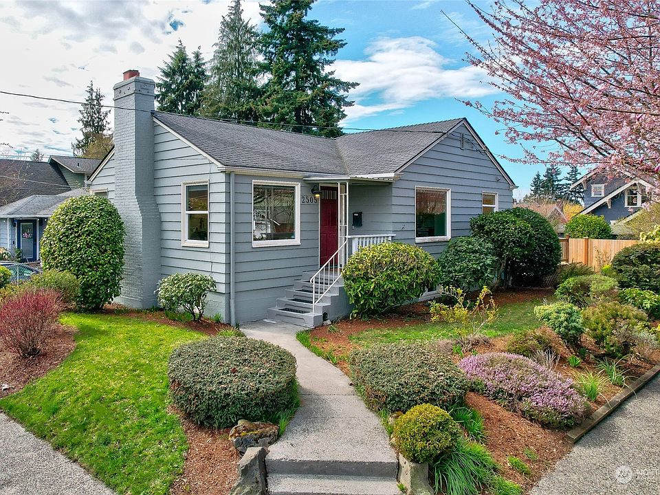 Nestled in the heart of Loyal Heights, this charming home is a dream come true! The large, sunny living room welcomes you with gleaming hardwood floors and cozy wood burning fireplace, while the dining room is perfect for hosting dinner. The updated kitchen boasts sleek solid surface counters & plenty of cabinet space. Outdoors, you will find a private, fully-fenced yard, large patio, garden space, and detached garage. The deck off the kitchen is perfect for your BBQ or morning coffee. Double-pane windows keep the home warm and quiet. The finished basement has a separate entrance, large 3rd bedroom, office/den, family room, 3/4 bathroom, and additional storage space. Located mere blocks from parks, cafes and restaurants. Welcome Home.