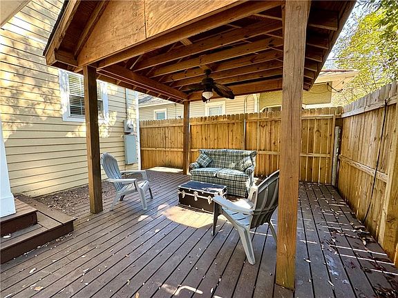 Discover this charming 15-year-old home on historic Palmer Avenue, just steps from Tulane University—perfect for LOW insurance! This delightful Uptown residence features upgraded finishes throughout, including unique lighting and gleaming hardwood floors. The spacious chef's kitchen boasts luxurious marble and granite accents and flows into an open floor plan ideal for entertaining. The versatile first floor includes an eat-in kitchen bar, and a separate den that can easily serve as a fourth bedroom. Enjoy an extra-large primary bedroom with a platform Jacuzzi tub in the en-suite bathroom and a HUGE walk-in closet! The outdoor spaces are perfect for BIG gatherings, featuring a long party deck, a covered seating area, a carport, and two inviting covered New Orleans porches for relaxation. Experience a wonderful blend of style, functionality, and prime location—come see!