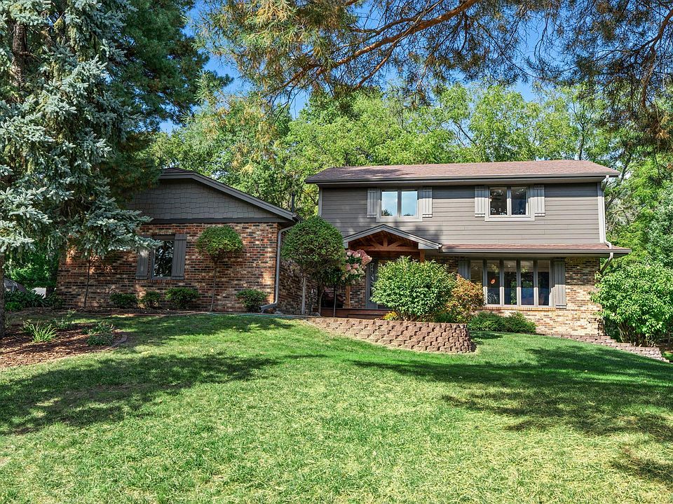 You will love this beautiful 2 story walkout on a half acre private lot that backs up to a wooded area, on a quiet culdesac close to everything, shopping, downtown Mpls, parks, trails, etc. 4 bedrooms on the upper level, 3 baths, 3 car heated garage. Wonderful outdoor spaces with a huge back deck with steps to backyard, large side patio off the walkout, custom built front portico & porch with maintenance free decking. Enjoy the large back yard that comes complete with a playhouse, slide, swing set, fenced in garden area & storage shed. Great home for the kids to run around on a private lot & on a culdesac. This home has many quality finishes throughout. Enter into the home to a tiled front foyer. Main floor half bath. Large formal living room with crown moldings and beautiful Hickory hardwood floors throughout the main floor. Informal dining area with doors to a cozy 3 season porch overlooking the backyard. Enjoy the spacious custom kitchen, with double oven, stainless appliances, gas stove with luxury pot filler faucet, granite counter tops, eat in kitchen with center island, large kitchen sink & window overlooking backyard. You will appreciate the extra kitchen storage with the built-in buffet area with granite counter and glass rack. Charming main floor family room overlooking back deck with a wall of windows and gas fireplace with brick surround and flanked by bookcases. Main floor laundry room with tiled floor & door access to back deck. Enjoy the heated attached 3 car garage with wash tub. Upstairs you will have 4 bedrooms, one of which is a primary suite with 3/4 bath and walk-in closet. Beautiful full bath with granite vanity top and stunning tiled tub surround & tiled floor. Brand new carpet just installed in all bedrooms, hall & stairs. You will notice all the solid oak paneled doors throughout the home. The lower level offers a large family room with hardwood floors, new gas fireplace with beautiful stone facade. Office area with sliding doors to outside patio. Easy to add a nice 3/4 bath off the utility area, also there are 2 huge storage areas (one could be a nice play room or non-conforming bedroom suite. Furnace and AC new in 2021, radon mitigation system installed. Very well maintained home in a great location, very private! Please exclude basement tv, bracket and sound system .