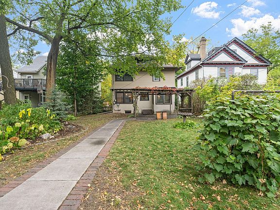 Step into this spacious and sun-filled 1908 Prairie-style home, where historic charm meets thoughtful modern updates. Fresh paint throughout highlights beautiful natural woodwork, 9-foot ceilings, and refinished original hardwood floors that gleam across the main level. The updated kitchen, main-floor laundry, air conditioning, and numerous Andersen windows bring comfort and convenience to this classic home.