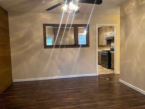 Brick homeHard floorsCovered patioLarge shade treesRoomy bedroomsUpdated kitchen