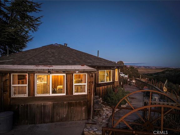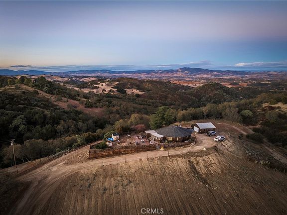 Situated amongst the hills of Monterey County between Lake Nacimiento and Lake San Antonio you’ll find a custom 1977 built home with 3 Bed/2 Bath round house built atop gentle rolling hills on 32 usable acres. Property and land is fully cross fenced and ready for livestock or agriculture build out. Spectacular 360 degree Panoramic views in every direction. Multiple wells on the property exist with lots of areas for storage/CTrain/Equipment for all your outdoor ranching needs. Round home that centers around a rotunda/vaulted ceiling with a free-standing wood burning stove that heats the house in minutes and plenty of firewood all over the property for fireplace use. Main house has updated tile flooring that pulls in the outdoor feeling, updated Master Bath and updated Kitchen Appliances. Brand new comp shingle roof recently installed. Built out laundry/mud room and one of the bedrooms off laundry room shares a full bath with guest room. New swamp cooler for the warmer days but excellent microclimate environment to enjoy the outdoors year-round. Hot tub ready pad and hook up to take in all the incredible sunrises and sunset views. All the feels of a Big Sur cabin but close to Paso Robles and Oak Hill Market amenities near Lake Nacimiento. If you’re looking for peace, serenity and amazing views and ranching options, look no further. Schedule a private showing today.