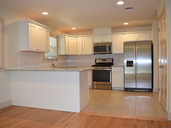 STUNNING REMODEL!! All new kitchen & Baths with high end finish outs! Recessed lighting, tons natural light from all new windows. You will love this house! New kitchen appliances, stackable washer/dryer, carpet in two bedrooms, fenced in yard coming soon! Pets okay! Fantastic East side location! Double vanities and walk in showers in both bathrooms! Large master with walk in closet! Owner maintains yard! NOTE: Backyard will be divided when back house is built in a year. preferred lease end date is 7/31/17, 6-8 month lease available. Owner maintains yard!