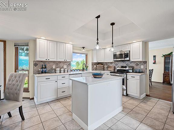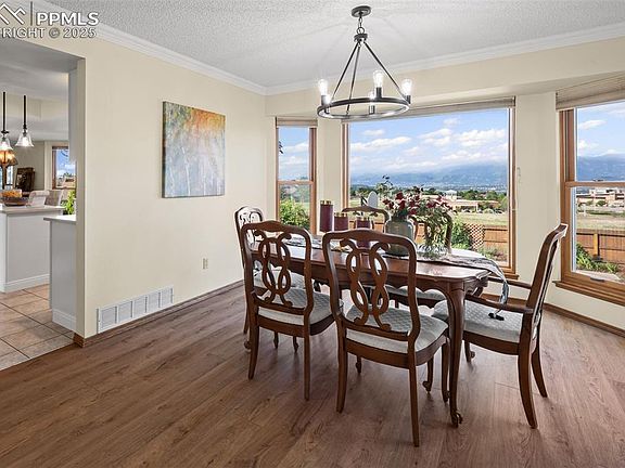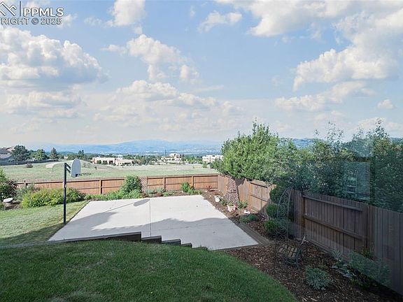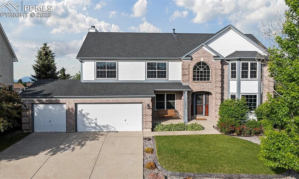 Pride of Homeownership! Original Home Owners. Backs to Open Space. Breathtaking views. One-of-a-kind Classic Homes Monarch model. Perfectly situated on the best lot in the neighborhood, this home backs to open space and offers unobstructed views of Pikes Peak and the glowing red rocks of Garden of the Gods—visible from the family room, dining area, kitchen sink, several upstairs bedrooms, and even the master bath tub. Located in the award-winning Academy D20 School District—just a short walk to Academy International Elementary—this 3 car garage home features extended living spaces, a dedicated main-level office, crown molding, and gorgeous ¾” hardwood floors. Enjoy a beautifully renovated kitchen and bathrooms (2018) with quartz counters and white cabinetry, plus 2016 Anderson windows with tinted treatments and new carpet (2023) with upgraded padding. Upstairs, the spacious laundry room—with built-in sink, cabinetry, and mountain views—sits conveniently near the primary suite and three oversized bedrooms with vaulted ceilings. The primary suite includes a bay window, luxurious en suite bath, and massive walk-in closet. Step outside to a true gardener’s paradise, complete with a pergola, in ground Fountain, basketball court, and over 30 rose bushes among lilacs, wisteria, hibiscus, sweet pea climbing up the trellis, irises, butterfly bush, and more. Curb appeal shines with a brick arch facade, covered front porch with swing, and manicured landscaping. No HOA, air conditioning, fiber optic internet available in the neighborhood, and a prime location near I-25, Library 21C, John Venezia Park, Children’s Hospital, the Air Force Academy, Shops at the Promenade, and restaurants, make this home a rare find in Colorado Springs. Don’t miss your chance to make it yours! This one will GO FAST...!!!