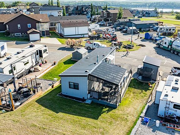 Contemporary Park Model with Stunning Golf Course & Lake Views – Turnkey & 4-Season Ready! Discover the perfect blend of contemporary style and comfort in this stunning 2-bedroom, 1-bathroom park model in Pine Lake. Built in 2015, this beautifully maintained home feels like new and is designed for year-round living. Key Features: • Prime Location: Enjoy golf course views to the west and a serene lake view to the east. • Stylish Outdoor Living: Spacious deck, partially covered with a pergola, plus a shed for extra storage. • Contemporary Interior: Bright open-concept floor plan with a cool, modern aesthetic. • Fully Equipped Kitchen: Breakfast bar and a propane stove for effortless cooking. • Cozy & Warm: Features an electric fireplace to keep you comfortable in all seasons. • Master Suite: Built-in storage and a thoughtfully designed space. • 3-Piece Bathroom: Functional and stylish. • Turnkey & Move-In Ready! Don’t miss this incredible opportunity to own a 4-season getaway in a prime location. Whether you’re looking for a weekend retreat or a year-round home, this property offers comfort, style, and breathtaking views. Resort includes: an indoor heated swimming pool, hot tub, exercise/gym (open year-round!), changing rooms and bathrooms, pro shop at the clubhouse, 18 hole golf course, restaurant, lounge and patio with stunning views of the lake, driving range, playground, community gardens, sport courts, laundry facilities, event facility, snack shack, as well as fresh veggies and fruit from local farmers on Saturdays! Marina is available for rent at $1050 plus for the season: May to September. There is a crew who helps with setting up your boat lifts as well as they can stay on the beach for those who own the lots. All of this is just 35 minutes drive from Red Deer, 1.5 to Calgary and Edmonton! Enjoy the views of golf-course on summer days. Located at the quiet end of the road-perfect for relaxing after a long day of work. There is a double graveled parking spot for your vehicles to park. Condo fee includes water, sewer, garbage as well as gate and lawn maintenance except for weed control and clubhouse access. Pets are welcome with approval. All located on the pavement, all set up and ready to move in. Great community to enjoy summer in!