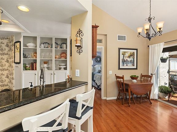 Discover the sought-after Expressions Community, where California living meets modern comfort. This stunning one-bedroom, two-bathroom townhome with an inviting loft offers a unique opportunity to enjoy a vibrant lifestyle. Step inside to find a thoughtfully designed floorplan featuring high ceilings and an open-concept kitchen that flows seamlessly into the spacious living area. The kitchen boasts a breakfast bar, perfect for casual meals or entertaining. Enjoy cozy evenings by the fireplace or bask in natural light from the sliding doors that lead to your private balcony patio, an ideal space for lounging, dining, or hosting friends. The primary bedroom is a serene retreat, complete with an en-suite bathroom featuring a double sink vanity and a walk-in closet. Convenience is key with a side-by-side washer/dryer laundry closet tucked away. The loft area, complete with its own bathroom, offers a versatile space for a home office, relaxation, or accommodating guests. Additional highlights include a one-car garage with direct access, laminate wood flooring throughout the main living areas and bedroom, and marble tiles in the kitchen and bathrooms. Enjoy the beauty of granite countertops and plantation shutters that enhance the windows. This well-maintained community features re-piped plumbing with Pex material, new roofs, and freshly painted exteriors. Low property taxes and association fees cover essential services like water and trash. Relax and unwind at the resort-style community pool and spa, complete with shower and bathroom amenities, plus shaded tables for outdoor gatherings. With excellent dining, shopping, and theaters just a stroll away, and easy access to the toll road, 5 freeway, and Costco, you're perfectly positioned to enjoy the best of Southern California. Nearby parks, beaches, and walking trails provide endless opportunities for adventure. Don’t miss the chance to make this exceptional townhome your own. Embrace the lifestyle you’ve always dreamed of in Rancho Niguel!