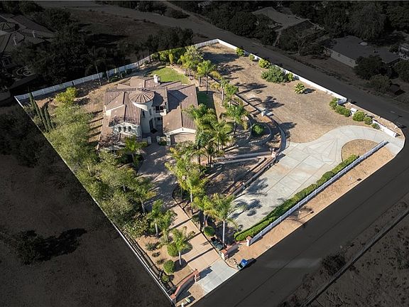 Welcome to 25055 Jack Rabbit Acres—a beautifully upgraded Panoramic-View Estate home situated on 1.59 acres in the rolling hills of Escondido. With 5 bedrooms, 3 full bathrooms, a loft, and a dedicated office, this 3,788 sq ft two-story residence offers the perfect balance of space, comfort, and breathtaking views from nearly every room. Step into the formal entry with soaring ceilings, leading to a spacious living room and separate formal dining area. The heart of the home is the open-concept kitchen, complete with granite countertops, a walk-in pantry, breakfast bar, and stainless steel appliances—seamlessly flowing into the expansive great room, ideal for entertaining. The expansive primary suite offers a spa-like retreat with dual vanities, a soaking tub, and two large walk-in closets. Additional highlights include a cozy fireplace, separate laundry room, and built-in media niches. Upstairs, you'll find a versatile loft space and additional bedrooms that capture the home’s sweeping territorial views. Outside, enjoy expansive patio and lawn areas perfect for gatherings, gardening, or simply soaking in the scenery. The oversized 3-car garage offers plenty of room for vehicles, toys, or workshop projects. Set in a peaceful hillside enclave, this property enjoys elevated terrain that welcomes cool westerly breezes and unobstructed sunset views. The dramatic architectural entry with turreted front and circular stairwell makes an unforgettable first impression, with soaring ceilings, elegant chandelier lighting, and custom iron-and-wood railings that define the home’s timeless Mediterranean style. Located just minutes from downtown Escondido yet tucked into a peaceful, view-rich setting, this property blends refined living with the privacy and charm of country life. A rare opportunity to own a beautifully upgraded estate in a sought-after North County location. This is the kind of home where life opens up—indoors and out. Schedule your private showing today.
