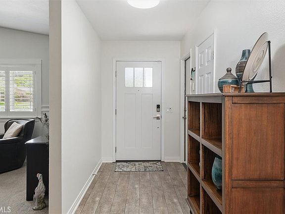 Welcome to this beautifully maintained and thoughtfully upgraded 3-bedroom, 2-bathroom single-story home nestled on a peaceful tree lined cul-de-sac. From the moment you arrive, you'll appreciate the curb appeal and the privacy this location offers—making it a perfect retreat for families, professionals, or anyone seeking comfort and convenience. Step inside to discover a light-filled interior with a functional layout. The front living room welcomes you with large windows and an open feel, making it a perfect space to relax or entertain. Just beyond, the separate family room features a charming fireplace and flows seamlessly into the remodeled kitchen—creating a warm, inviting space where family and friends can gather. Elegant laminate flooring flows throughout the main living spaces, providing both durability and style. The heart of the home is remodeled kitchen, complete with quartz countertops, high-end stainless steel appliances, ample cabinet storage, and a breakfast bar perfect for casual dining. Whether you're cooking for family or entertaining guests, this kitchen will impress. The spacious primary suite offers comfort and privacy with generous closet space and an en-suite bathroom featuring a walk-in shower and a fresh, clean design. Two additional bedrooms are well-sized and share an updated hall bathroom, ideal for family, guests, or a home office setup. Outside, the backyard is an entertainer’s dream. Enjoy year-round gatherings under the 3 large covered patios, plenty of room for outdoor seating, dining, and play. The backyard also includes a sizable shed for extra storage and is landscaped for low maintenance and maximum enjoyment. Additional features include an attached two-car garage, paid solar panels with battery backup for energy efficiency and peace of mind, and a newer roof that was replaced in 2021—saving you on future expenses.