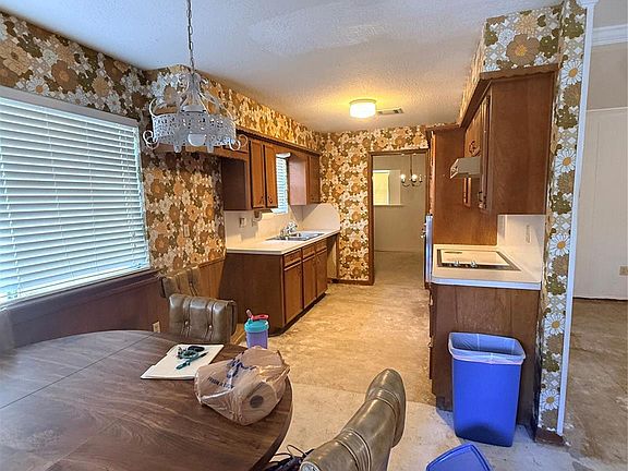 Recent flooring in bathrooms and laundry room. No flooring in the rest of the house. The central AC & Heater do not work. Windows are original. PEX Piping throughout attic. Unsure of roof age. Water heater was recently replaced and does work, it is gas.