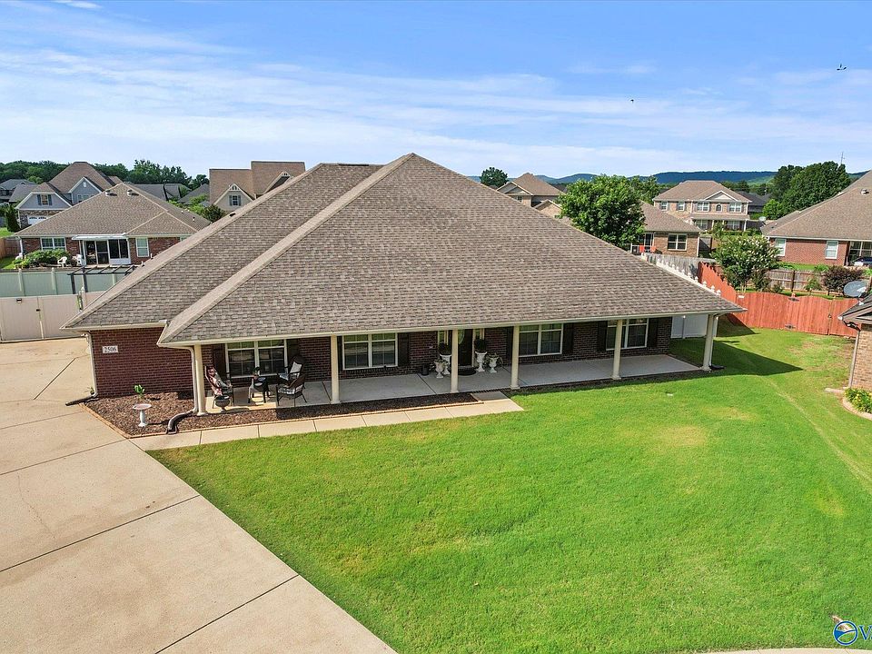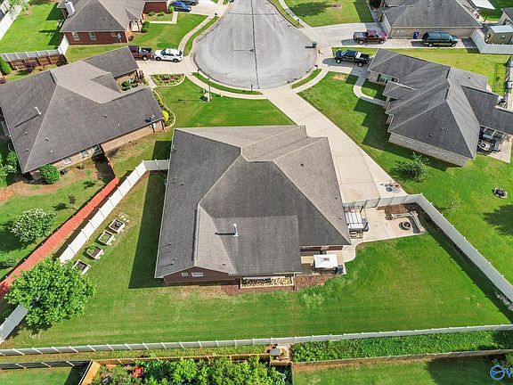 New Price for this 4BR/3BA+OFFICE-3121 sqft that sits at the top of a quiet cul-de-sac w the largest lot on the street! A covered front porch opens to an open floor plan with vaulted ceilings and abundant natural light. The enormous kitchen offers endless counters for multiple cooks with lots appliance opportunities on the bar! The owner’s suite boasts tray ceilings and plenty of space to unwind. Outside, enjoy the 10x22 screened patio with fire pit and hot tub, plus an oversized fenced backyard with raised beds for gardening and sports. Minutes from Redstone Arsenal Gate3 and Hays Nature Preserve trails, this move-in ready home is perfect for entertainment and gatherings!