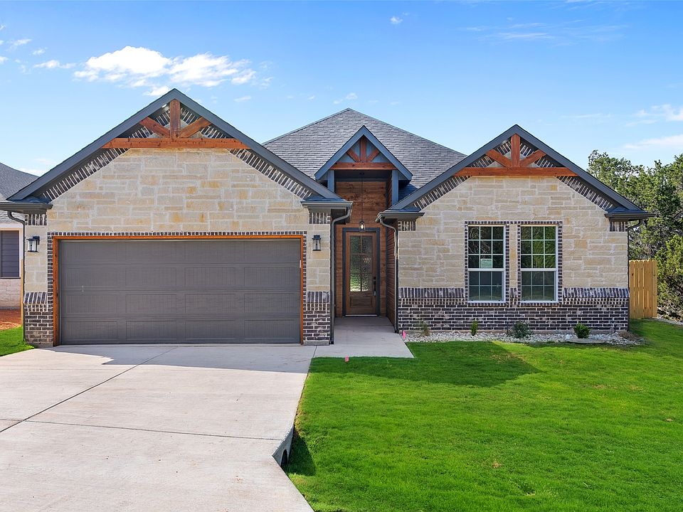 Welcome to this beautifully crafted new construction home nestled on a gorgeous lot adorned with mature trees, featuring 3 spacious bedrooms, 2.5 elegant bathrooms, and an array of high-end features designed for modern living. This home boasts an office with a wall-to-wall built-in desk, a 2-car garage, and an oversized laundry room equipped with a sink, custom cabinetry, and a quartz countertop for folding clothes. The master bedroom offers a private en suite bathroom with a luxurious shower and a spacious walk-in closet, while the secondary bedroom impresses with cathedral ceilings and a built-in desk. The kitchen is a chef's delight with a walk-in pantry, and the living room showcases decorative beams that add a touch of elegance to the open living area. This home combines modern convenience with a serene, picturesque setting, perfect for those seeking tranquility and luxury.