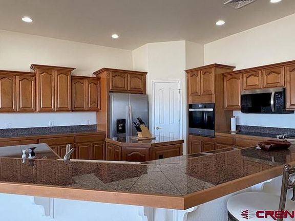 Gorgeous custom home available on Golf Course Ln! Open floor plan. Exquisitely designed kitchen made for entertaining! Beautiful kitchen cabinetry, plentiful counter space with tiled granite. Large pantry. Dining area with picture window overlooking the private back patio, large open space and our majestic mountains! Spacious primary bedroom with lots of natural light. Primary bathroom is huge! Double sinks, double closets, jetted bath tub, and a separate tiled shower. 2 more bedrooms on the opposite side of the home, with another full bathroom in between. Additional room off of main entry for home office, craft room, study room. Plus a 3 car garage! Lots of room for your cars, toys, storage! Back yard is terraced with mature landscaping. Covered patio - great for entertaining and enjoying the majestic mountain views and open space. Plum, cherry and an apricot tree, too! Sprinkler system in front and back of home to keep the yard beautiful! Custom home built in 2003, one owner. First time offered for sale! Easy access to golf course across the street, but still has those beautiful mountain views and open space on backside of home. The best of both worlds! New stainless steel appliances have been installed for an upgraded kitchen! Now has a whole new look!
