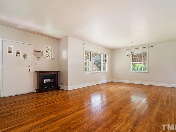 Sweet mid-century brick cottage overlooking Hillandale Golf Course! Wonderful Watts Hospital-Hillandale neighborhood. Arches, hardwoods, corner cupboards, triple window in DR, small cross-hatch window by front door, front porch, screened porch, 2-car brick carport (or should we say 2-car garage without garage doors?). Low brick wall on right side is on the property line shared with neighbors. Laundry is in storage area at back of carport. Property (inc appliances) being sold as is.