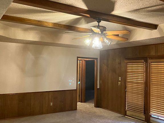 Very well taken care of brick, 3 bedroom, 2 bath home with basement and double garage. The living room is an eye-catcher with coffered ceilings, wood beams and a corner fireplace. The built-ins add extra display space. The kitchen with lots of cabinets, also, has a pantry! There are nice kitchen appliances, including a Whirlpool convertible range hood and Kenmore garbage disposal. The double sink is accented with modern Delta faucets. The kitchen and breakfast area both have nice blinds and curtains. There is an additional pantry in the utility room. The large isolated master bedroom has a large walk-in closet, as well as an updated master bath with a large walk-in shower. All three bedrooms are carpeted, have curtains and blinds and nice walk-in closets. There is no lack of storage space and built-ins in this home. Within the past year and a half, the owners added a $10,000 water softener and A Series 3700/3702 Reverse Osmosis System. Extras include the large garage doors with openers, sprinkler system, carbon monoxide alarms installed in 2021 and a Hunters Set and Save 150 Thermostat add in 2017. A covered patio opens up to the large backyard where you will find the automatic sprinkler system and two like-new storage buildings. The Grand Sequoia IR Class 4 shingles were installed in 2017.