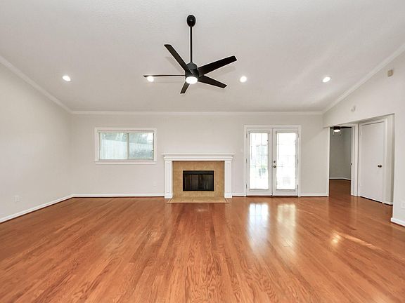 Fully updated home in sought-after Chimneystone, designed to impress with high-end finishes throughout. The open kitchen boasts Taj Mahal quartz counters, stainless gas appliances, subway tile backsplash & French doors leading to a backyard deck w/spacious fenced yard (all fencing 3 yrs). Fresh interior/exterior paint in a design-conscious palette pairs w/refinished engineered wood floors, tile in wet areas. Primary bath features gorgeous designer tile surround, matte black fixtures, and modern hardware; guest bath fully remodeled w/vanity, striking tile, and sleek finishes. High ceilings in living & primary, ceiling fans in all rooms, LED recessed lighting, cozy gas fireplace, insulated garage door & rent includes fridge/washer/dryer. Crisp white cabinets, low-maintenance landscaping, new toilets, new mirrors elevate the modern appeal. Walk to pool/tennis; zoned to Settlers Way Elem & Clements. A home you'll be proud to call your own simply stunning and an absolute showplace.