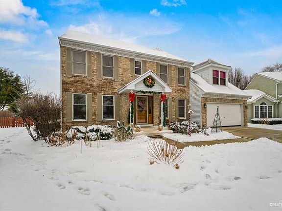This Orchard Valley 4 bedroom 2 1/2 bath home is truly ready for you to move right in! Hardwood floors throughout the main floor, brick fireplace in the family room that opens to the light bright kitchen. Separate living and dining rooms and also a 1st floor office. Upstairs enjoy the 4 large sized bedrooms and private master bath with whirlpool tub, separate shower and dual vanity sinks. Basement is finished with an extra bedroom. Outside you can enjoy the built in bar and fire-pit on the paver patio, all in a fenced in backyard. A wonderful place to entertain!