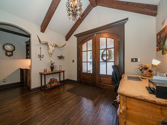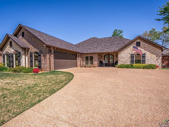 Welcome home to this amazing property in North Longview. This home features a grand entrance looking into the living room and beyond to the resort like back yard. The living area offers expansive ceilings, gas fire place and hardwood looking tile floors. The kitchen is a chef's dream with lots of cabinets and counter top space. The center island provides an area to prep or serve a meal. The formal dining area is at the front of the home with easy access from entry or kitchen area. The bedroom arrangement is split with primary on one side (with bar/coffee bar area right outside) and the other 3 bedrooms on the other side of the home. There are two bedrooms that share a connecting private guest bath and an additional full bath for guests. The 2 car garage is over sized and room to walk around, even with vehicles parked inside. Even a large newer truck will fit inside! Outside you will enjoy a low maintenance landscaped yard and pool area. The seller has done extensive rock and landscape work to make the backyard look the way it does. The gunite pool is salt water and is heated. No detail has been spared from the pool to the lightening to the fire pit. This home also features a whole house generator.