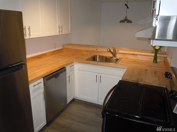 Remodeled! 2 bedroom 1.5 bath ground floor condo in Fed Way. New vinyl plank flooring, Butcher Block counter tops in kitchen w/ bar seating and stainless steel appliances. Freshly painted and beautiful ship lap walls in living room, real wood burning fireplace. Private partially covered patio. Tons of storage. No wasted space here. Less than .25 miles to I-5 and Transit center and walking distance to shopping, restaurants and movies. Pool, spa, sauna and clubhouse and low HOA's. Won't last!