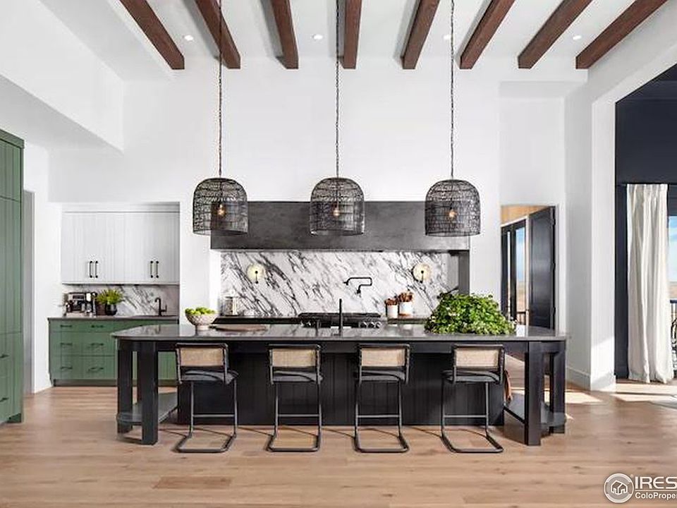 - Eat-in Kitchen, Separate Dining Room, Cathedral Ceiling(s), Open Floorplan, Pantry, Walk-In Closet(s), Wet Bar, Kitchen Island, High Ceilings, Beamed Ceilings