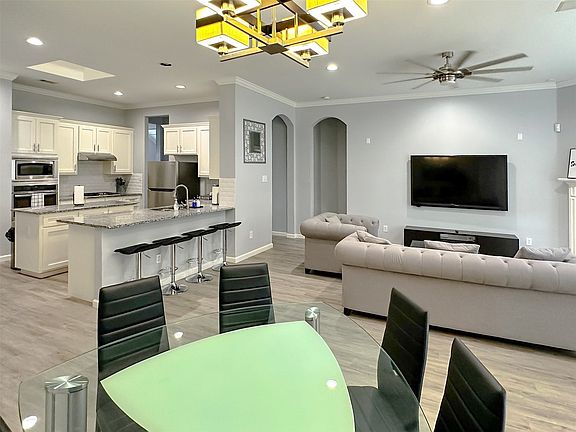 Terrific one-story home offering both comfort and income potential! This spacious residence features a large family room with soaring ceilings and a cozy gas log fireplace, perfect for relaxing or entertaining. The updated kitchen boasts granite countertops, stainless steel appliances, and a center island, opening seamlessly to the living and dining areas. A private study with French doors provides a quiet retreat for work or reading. The split-bedroom layout ensures privacy in the master suite, while abundant natural light fills the home throughout.