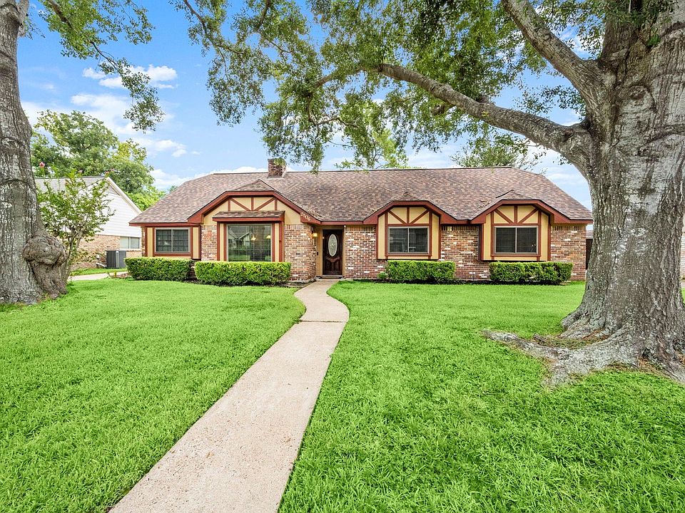 Experience the relaxed living of Spring Branch with this gorgeous 1 story, 4 bedroom, 2.5 bath home in the idyllic community of Spring Shadows. Enjoy wood flooring, a family room with brick fireplace, formal dining room, and a den that doubles as a game room. Take your culinary abilities to new heights in the incredible kitchen, complete with granite countertops, a backsplash with granite inlay, a breakfast bar, and pendant lighting. Enjoy the quiet sanctuary of your primary suite overlooking the peaceful backyard, complete with dual closets, separate vanity, and a tub/shower. Host gatherings with family and friends under the shade of the big trees in the spacious backyard. Partial garage space turned into office with half bath. HVAC replaced in 2023 & roof replaced in 2019. You'll also enjoy walking along the Spring Branch Trail at the end of the street. Close to shopping, dining, and entertainment at Memorial City Mall & CITY CENTRE. Minutes to Energy Corridor.