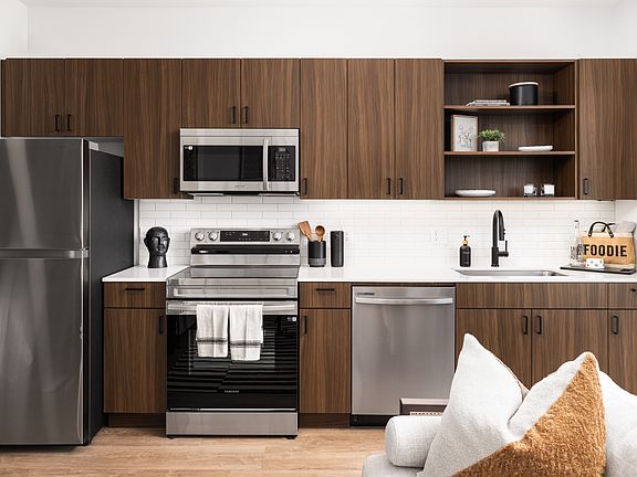 - Exterior features: Balcony, Barbecue, Bicycle storage, Business Center, Coffee Bar, Connectivity to River Trails, Courtyard, Envoy Car Sharing On-site, High-speed Internet Ready, Online Rent Payment, Package Receiving, Quartz Countertops, soft close cabinets & drawers, Stainless Steel Appliances, TV Lounge, Tile Backsplash, Undercabinet lighting