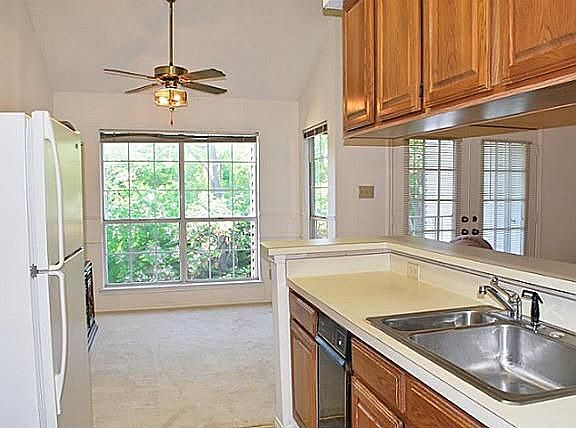 Tastefully updated second story condo with views as though you were living in the trees. Soaring ceilings with an open living, dining and kitchen bring everyone together. Morning brew at the breakfast bar or the covered patio looking over the heavily wooded creek. The dining area can serve as a flex space for the home office. Bamboo flooring and an updated bath are the finishing touches. Don't miss the walk-in closet in the master bedroom. Nestled in with the 25 unit Garden Homes that sale in the mid 300's, this jewel should not be missed and is located near Stevens Park Golf Course, Bishop Arts District, & Trinity Groves. The community boast a shared pool with clubhouse and an off-leash dog park. See ya soon?