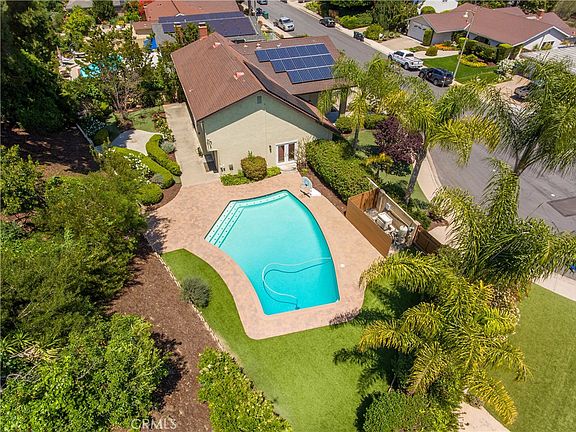 This stunning pool home sits on a flat cul-de-sac in the heart of Mission Viejo. You will enjoy nearly 3000 sq feet of livable space, on a 14,000 sq ft private lot, 4 bedrooms + a massive bonus room (could be two more bedrooms) and 3 full bathrooms. The interior greets you with wood tile floors, soaring ceilings and tons of natural light. The kitchen has solid surface counter tops, natural wood cabinets, stainless steel appliances, LED recessed lighting, and a large walk-in pantry. The bathrooms all have been upgraded with beautiful cabinets, counter tops and 3/8 inch thick shower glass. The bedrooms are all large, especially the master. The home has a newer AC, newer double paned windows, new sliding doors, large 6.94 kWp solar system, and new pool-paver decking. The backyard has a large double door gate. Come check out this amazing home.