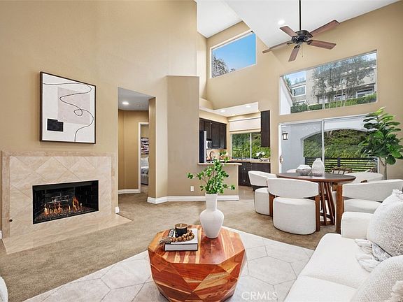 Gorgeous, upgraded, and private home in the highly sought-after Mirador community of Rancho Niguel! Situated on a quiet, peaceful cul-de-sac, this light and bright home features a spacious living room with soaring vaulted ceilings and an abundance of natural light! The upgraded kitchen boasts granite countertops, gas cooktop, newer dishwasher, and serene views of the greenbelt maintained by the association. Step out onto the private balcony, which includes a roomy storage closet—perfect for relaxing or barbeque and entertaining. The spacious primary suite on the main floor offers sliding doors to the private patio, walk-in closet, and a remodeled bathroom with dual vanities! Another main floor bedroom/office includes an adjacent half bath, while the upstairs third bedroom is bright and features its own fully remodeled bathroom! The unit plumbing was re-piped with PEX by “Repipe Specialists” in 2019 with a Lifetime Warranty. Newer air conditioning and furnace were installed in 2021. Additional highlights include: an indoor laundry closet, newer HVAC system with smart thermostat, remodeled bathrooms, electric vehicle charger, epoxy flooring in the garage, recessed lighting throughout the home with smart remote-control plugs, gas fireplace in the living room, 5-inch baseboards, Ring doorbell, and custom ceiling fans in the living room! TRASH & WATER are paid for by the HOA and are included in the monthly HOA fee, along with exterior maintenance, roof, termite coverage, structural insurance, and all amenities. Enjoy the convenience of an attached garage with direct home access, plus a covered carport right in front of the unit and ample guest parking nearby—which is a rare find in this price range! Community offers well-maintained landscape, and beautiful pool & spa. Easy access to toll roads and major highways—perfect for a smooth daily commute. Close to top-rated schools, Rancho Niguel shopping center, restaurants, and entertainment. This ONE HAS IT ALL AND IS PRICED TO SELL!
