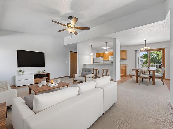 Enjoy easy living in this charming 2-bedroom, 1-bathroom condo located in Fargo’s highly desirable Bluemont Lakes neighborhood! This FHA-approved home features a spacious open floor plan with vaulted ceilings that create a bright, airy atmosphere. The kitchen flows seamlessly into the living and dining areas, perfect for entertaining or relaxing. You'll appreciate the convenience of in-unit laundry and a two-stall, attached garage providing comfort and functionality all year round. Nestled near a scenic walking trail and easy access to shopping, dining, and I-94, this condo combines comfort, style, and location. The monthly HOA fee covers all the essentials—water, sewer, garbage, lawn care, snow removal, exterior maintenance and insurance, plus parking lot upkeep. You’ll love the convenience, value, and peace of mind that comes with this well-managed association. Pets welcome! Don’t miss your opportunity to own in one of Fargo’s favorite communities!