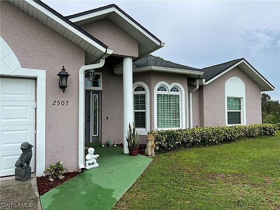 2146 Square feet of living area in this spacious 3 bedroom 2 1/2 bath home, open great room with LUXURY VINYL FLOORS, NEW DIMENSIONAL SHINGLE ROOF IN 2017, NEW CENTRAL HEAT AND AIR IN 2017, IMPACT RESISTANT WINDOWS, newer dual tank water treatment system, French doors lead to 28 X 14 screened lanai with "HOT SPRINGS" hot tub, granite countertops in kitchen with island counter, breakfast bar, extra large pantry, upgraded appliances including a Samsung French Door refrigerator and double oven, tile backsplash, plantation shutters, crown molding, half bath located off the main living area, soaring high cathedral ceilings with plant shelves, walk in closets in every bedroom, master bedroom with private bath, dual sinks and vanities, large walk in shower with built in bench and multi shower heads, newer commodes in all bathrooms, LED lighting, oversized 579 Square foot double garage with plenty of storage, excellent west Lehigh location just minutes to SR 82, I-75 and Ft Myers.