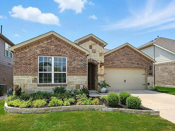 Step into this gorgeous Pulte home in an award winning Hillwood community and you will never want to leave! There is plenty of room for a growing family with 3 bedrooms, 2 full baths and a large open concept living, dining and kitchen. Work from home and need an office? This home has a gorgeous office with French doors that can also be used as a playroom or media room as well. The kitchen is bright and functional with a gas stove and a beautiful window that looks out over the back yard. Cozy up in the living room in front of the gas fireplace or entertain your guests in the dining room large enough for a table that seats 8. Relax in the primary suite with large windows that bring in natural light and enjoy plenty of space in the primary bath with double sinks in a gorgeous black and white color palette. Pecan Square is an award winning community with an onsite HOA and lifestyle coordinator who hosts weekly events like food trucks, holiday events, movies at the square and much more. Hoa includes internet as well as amenities including three pools, a gym, a dog park, community workspace, game room, parks, and pickle ball courts. This house is priced to sell and it will not last. Solar panels on the house will be paid off at closing and will save you money on your energy bills. Reach out today for a private showing.