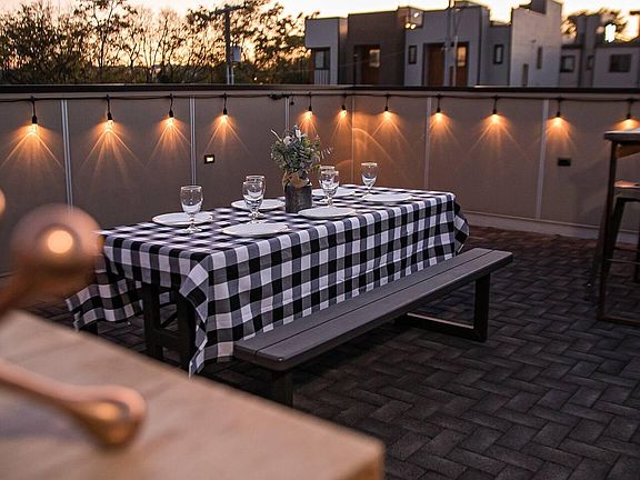 Stainless steel appliancesBack patioFully functional kitchenGated parkingShared rooftop balconyGreat views of downtown