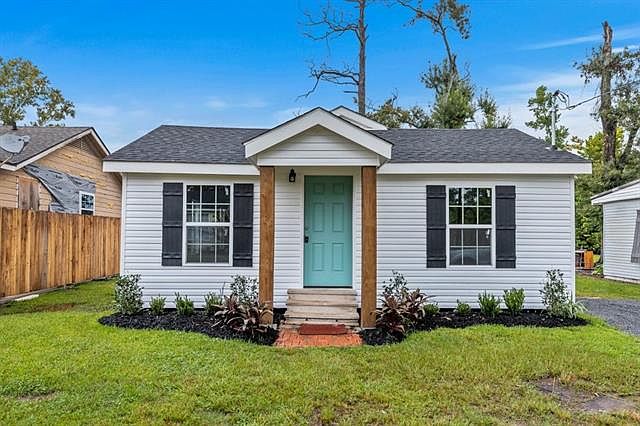 Adorable and charming cottage totally updated from top to bottom in the heart of Lake Charles. This home is centrally located between Lake and Ryan St. This home features an open floor plan with new wood vinyl plank floors throughout. Family room has cathedral ceilings and is open to the kitchen. Kitchen has brand new cabinets, quartz counters, subway tile backsplash, open wood shelving and stainless appliances. Bathroom has been completely redone with all new plumbing and fixtures. New siding, roof, HVAC, almost everything in the home is new! Large laundry room inside with extra storage space. Move in ready or buy it as an income producing investment! Flood Zone X, which typically does not require flood insurance. Large privacy fenced backyard and fresh landscaping.